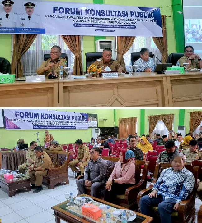 Kepala Seksi Perdata & Tun Baniara Sinaga, S.H., M.H. bersama Kasubsi Perdata & Tun Citra Anggini Eka Putri, S.H. menghadiri Pembukaan Forum Koordinasi Publik Rancangan Awal Rencana Pembangunan Jangka Panjang Daerah (RPJPD) Kabupaten Belitung Timur Tahun 2025 – 2045.