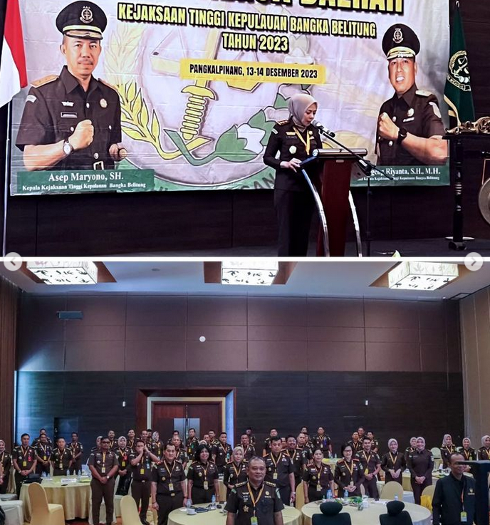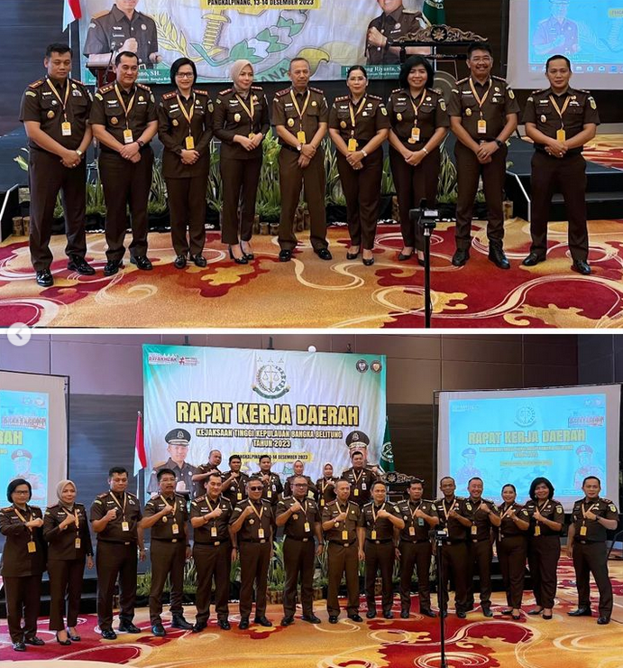 Kepala Kejaksaan Negeri Belitung Timur Dr. Rita Susanti, didampingi Kepala Seksi Intelijen Yoyok Junaidi, S.H., M.H., Kepala Sub Bagian Pembinaan M. Agussyahfitri, S.H., M.H dan staff Bidang Pembinaan Yunus Ihsan, S.Kom. mengikuti Rapat Kerja Daerah Tahun 2023 Kejaksaan Tinggi Kepulauan Bangka Belitung hari pertama yang diselenggarakan di Ballrom Soll Marina Hotel Bangka.