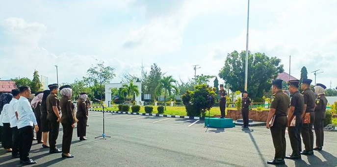 Kepala Seksi Tindak Pidana Khusus Hamka Juniawan S.H. bertindak selaku Penerima Apel Kerja yang bertempat di Halaman Kantor Kejaksaan Negeri Belitung Timur.