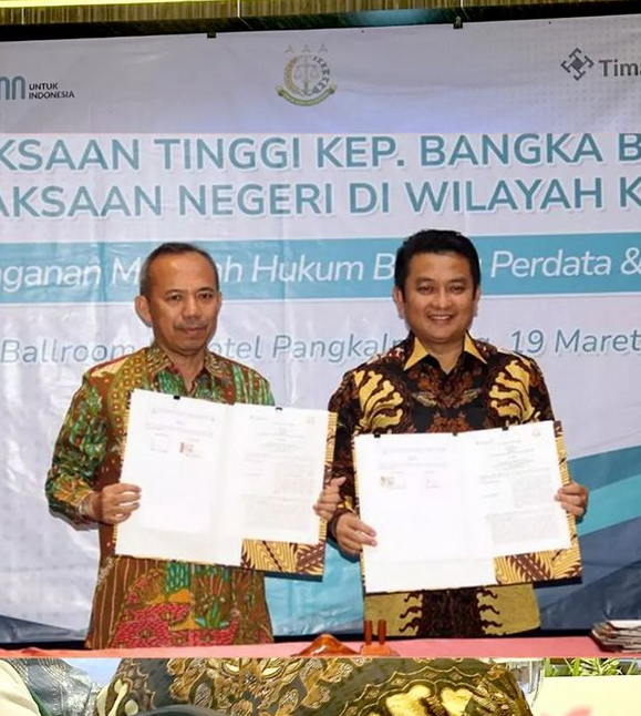 Selasa, 19 Maret 2024 Kepala Kejaksaan Negeri Belitung Timur Dr. Rita Susanti, S.H.,M.H. didampingi Kepala Seksi Perdata dan Tata Usaha Negara Baniara M Sinaga, S.H.,M.H. menghadiri acara Penandatanganan Perjanjian Kerja Sama PT Timah TBK dengan Kejaksaan Tinggi Kepulauan Bangka Belitung dan seluruh kejaksaan Negeri di wilayah kepulauan bangka belitung tentang Penanganan Masalah Hukum di Bidang Perdata dan Tata Usaha Negara bertempat di Hotel Novotel Bangka.