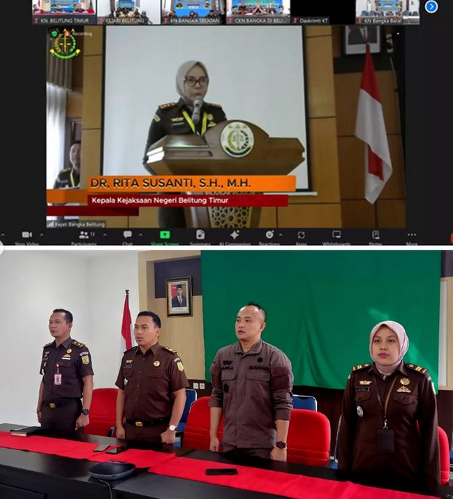 Kamis, 21 Maret 2024 bertempat di Kejaksaan Tinggi Bangka Belitung, Kepala Kejaksaan Negeri Belitung Timur Dr. Rita Susanti mengikuti pelaksanan Pra Musyawarah Perencanaan Pembangunan Nasional tahun 2024. Beserta diikuti jajaran Kejari Belitung Timur mengikuti pelaksanaan secara virtual.
