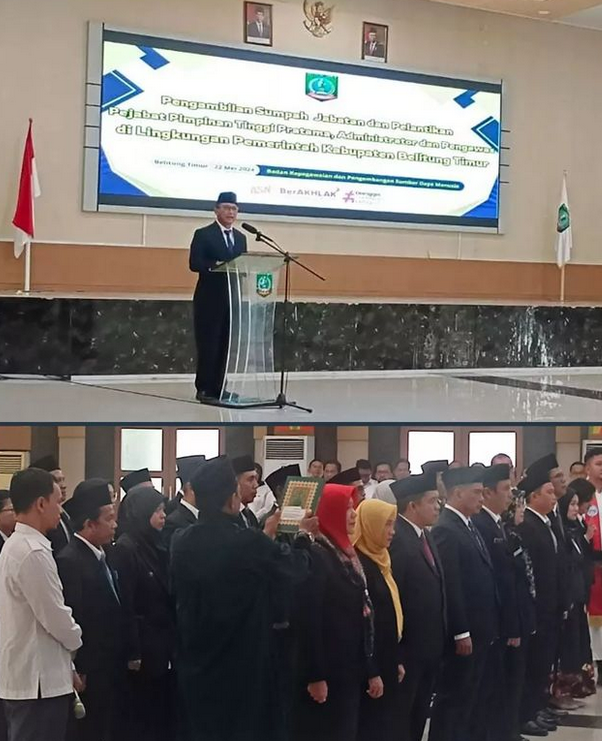 Rabu, 22 Mei 2024 bertempat di Auditorium Zahari MZ Belitung Timur, Kejaksaan Negeri Belitung Timur yang diwakili oleh Kepala Seksi Perdata dan Tata Usaha Baniara Mangapul Sinaga, S.H.,M.H. menghadiri acara Pengambilan Sumpah Jabatan dan Pelantikan Pejabat Pimpinan Tinggi Pratama, Administrator, dan Pengawasan di Lingkungan Pemerintah Kabupaten Belitung Timur.