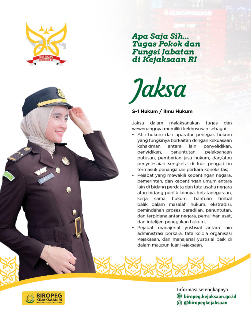 Saatnya bagi kalian yang berminat untuk menjadi bagian dari penegakan hukum yang humanis dibawah Jaksa Agung, mari bergabung dengan Kejaksaan RI, melalui pengadaan CASN TA 2023.