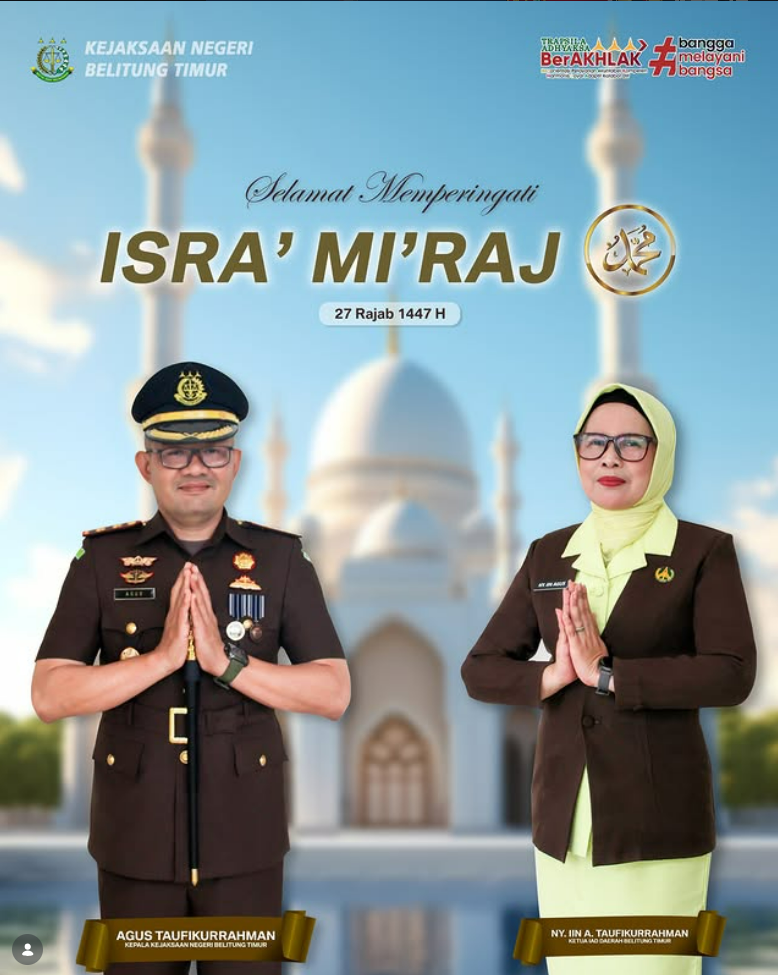 Kepala Kejaksaan Negeri Belitung Timur Agus Taufikurrahman, S.H., M.H., Ketua IAD Daerah Belitung Timur Ny. Iin A. Taufikurrahman beserta Jajaran mengucapkan :