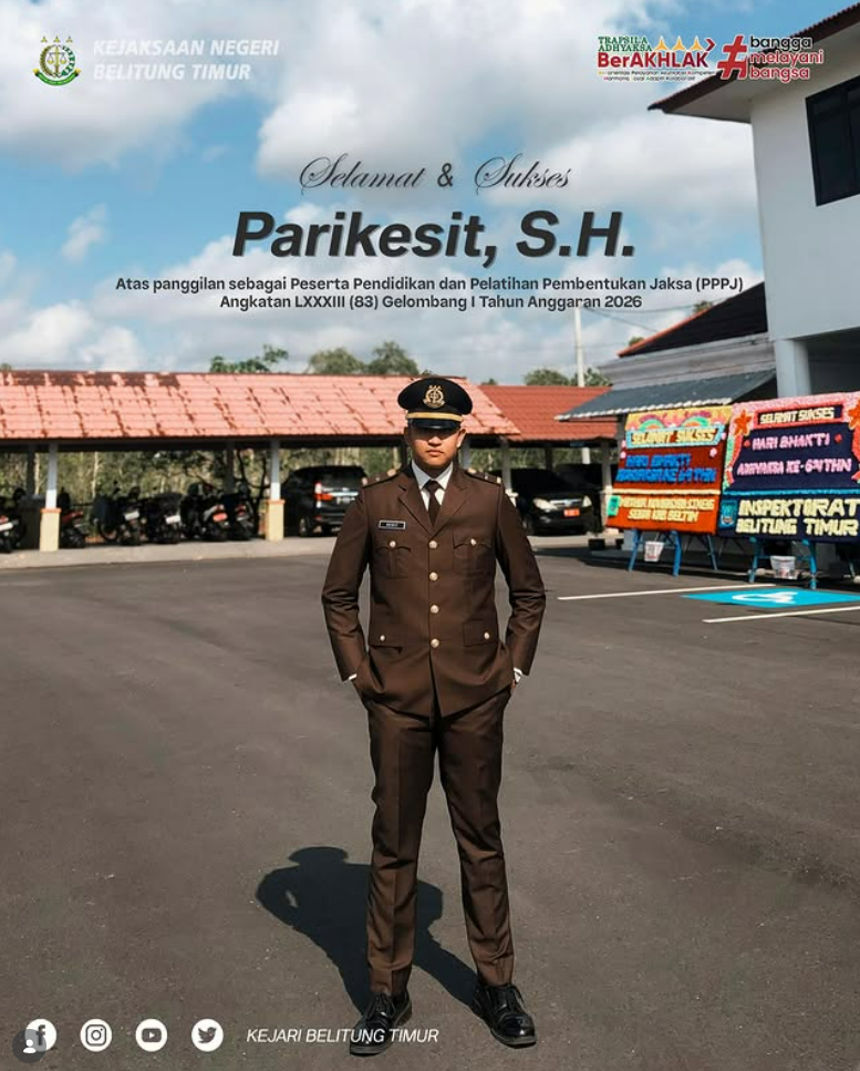 Selamat dan Sukses Parikesit, S.H. atas panggilan sebagai peserta Pendidikan dan Pelatihan Pembentukan Jaksa (PPPJ) Angkatan LXXXIII (83) Gelombang I Tahun Anggaran 2026.