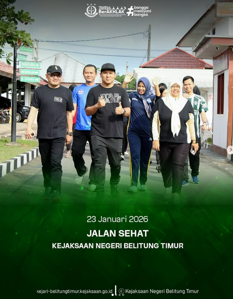 Jum’at, 23 Januari 2026, Kejaksaan Negeri Belitung Timur melaksanakan kegiatan jalan sehat yang diikuti oleh seluruh pegawai Kejari Belitung Timur.