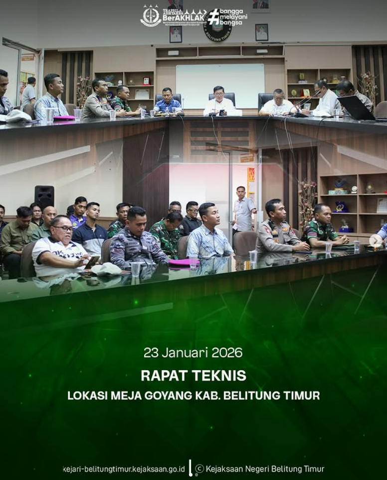 Kamis, 23 Januari 2026, Kejaksaan Negeri Belitung Timur menghadiri Rapat Lanjutan Rencana Teknis Lokalisasi Meja Goyang di Kabupaten Belitung Timur yang dilaksanakan di Ruang Rapat Bupati Kabupaten Belitung Timur.