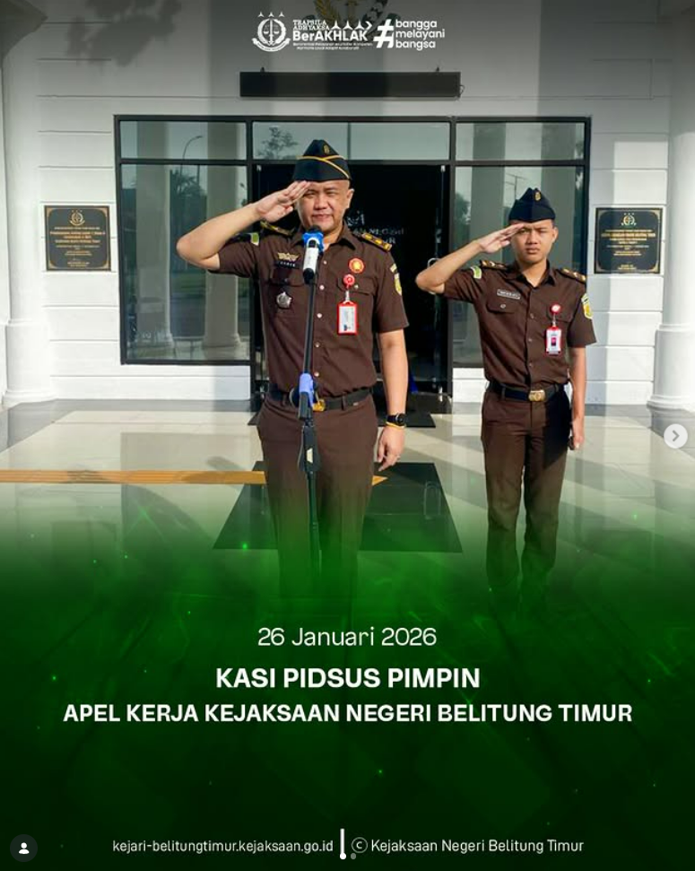 Kejaksaan Negeri Belitung Timur melaksanakan Apel Kerja yang berlangsung di halaman Kantor Kejaksaan Negeri Belitung Timur.