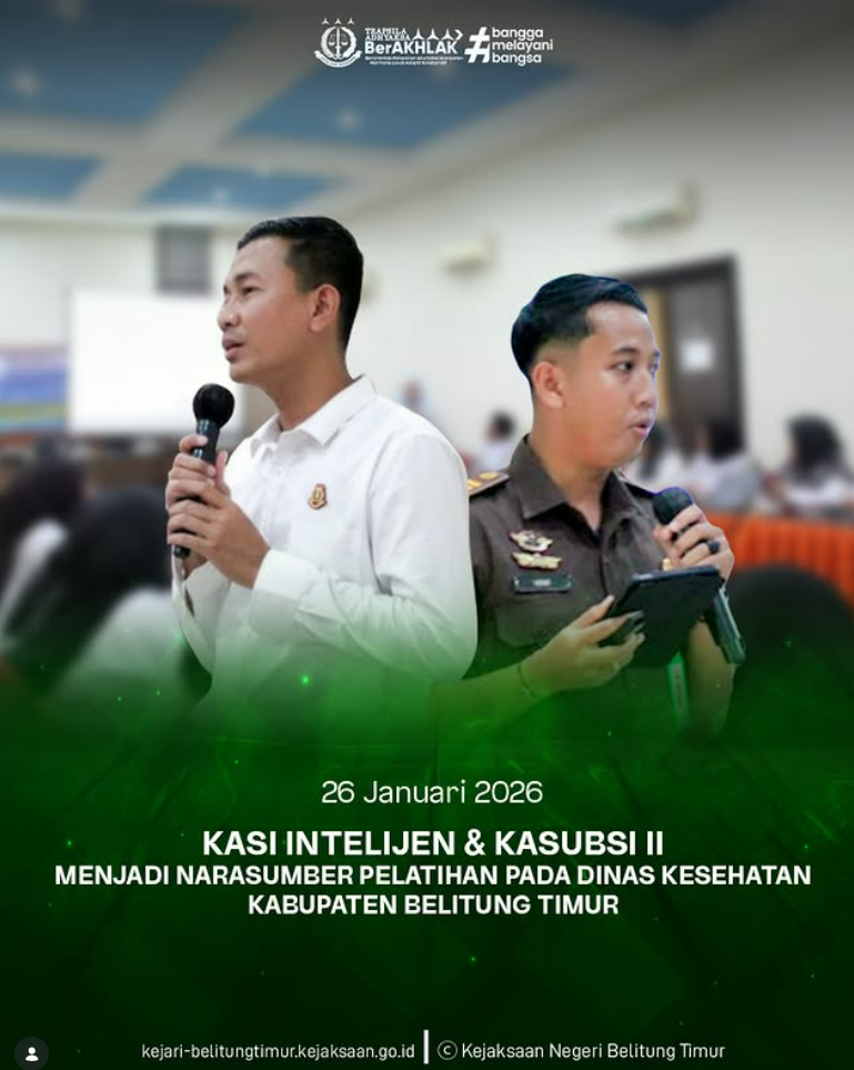 Kegiatan pelatihan ini bertujuan untuk meningkatkan pemahaman dan kapasitas para pengelola program kesehatan di tingkat Puskesmas dalam upaya pencegahan serta pengendalian penyakit kusta dan frambusia. Kehadiran Kejaksaan Negeri Belitung Timur sebagai narasumber merupakan bentuk dukungan terhadap program kesehatan masyarakat, khususnya dalam aspek penegakan hukum, pencegahan, serta penguatan koordinasi lintas sektor guna mewujudkan pelayanan kesehatan yang optimal dan berkelanjutan di Kabupaten Belitung Timur.