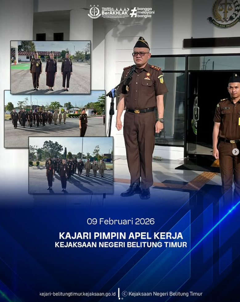 Senin, 09 Februari 2026, Kejaksaan Negeri Belitung Timur melaksanakan Apel Kerja di halaman Kantor Kejari Belitung Timur yang dipimpin langsung oleh Kepala Kejaksaan Negeri Belitung Timur, Agus Taufikurrahman, S.H., M.H.