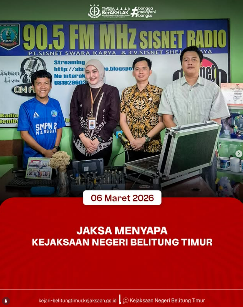Kejaksaan Negeri Belitung Timur akan melaksanakan kegiatan “Jaksa Menyapa” yang disiarkan melalui SISNET Radio 90.5 FM.