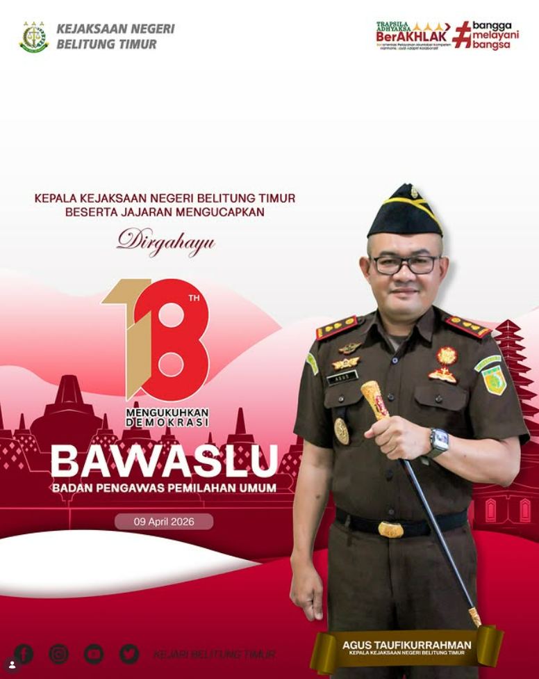 Kepala Kejaksaan Negeri Belitung Timur Agus Taufikurrahman, S.H., M.H. beserta Jajaran mengucapkan :
