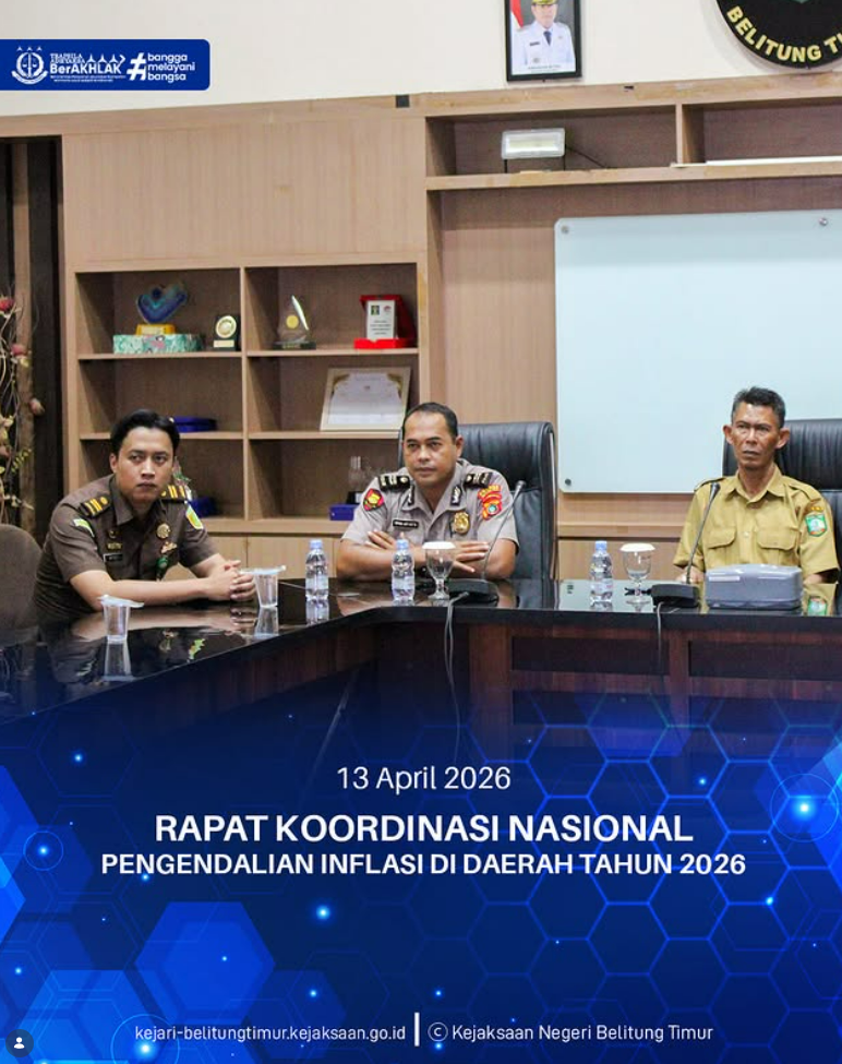 Kasubsi I Risdy Ardiansyah, S.H. menghadiri kegiatan Rapat Koordinasi Nasional (Rakornas) Pengendalian Inflasi tahun 2026 yang dilaksanakan secara hybrid melalui Zoom Meeting. Kegiatan ini berlangsung di Ruang Rapat Bupati Belitung Timur dan diikuti oleh berbagai pemangku kepentingan dari seluruh Indonesia.