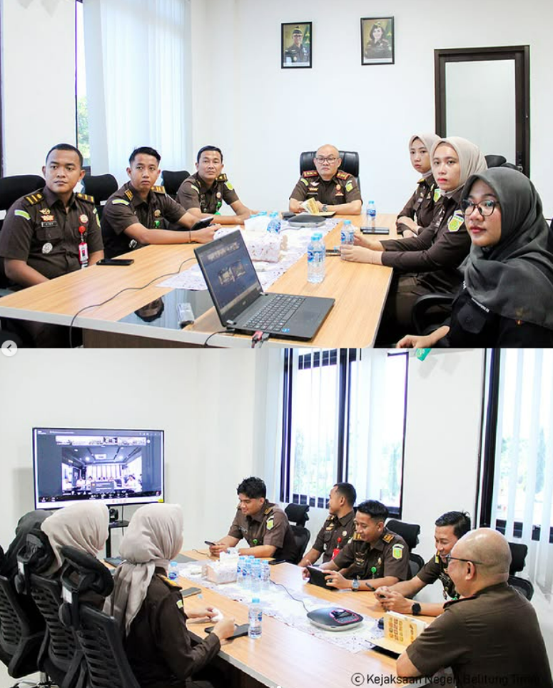 Kepala Kejaksaan Negeri Belitung Timur, Agus Taufikurrahman, S.H., M.H., bersama para Kepala Seksi (Kasi) dan Kepala Sub Seksi (Kasubsi) di lingkungan Kejaksaan Negeri Belitung Timur mengikuti kegiatan pengarahan Jaksa Agung Muda Bidang Intelijen (JAM Intelijen) yang dilaksanakan secara daring.