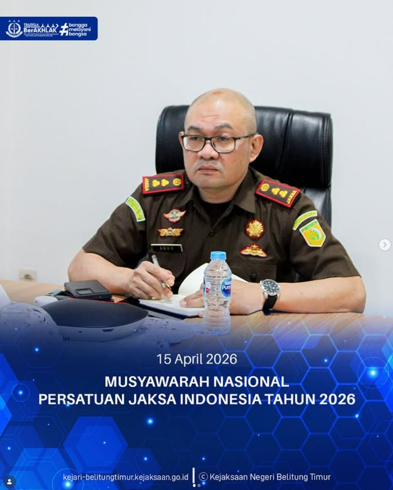 Kepala Kejaksaan Negeri Belitung Timur Agus Taufikurrahman, S.H., M.H. bersama para Kasi dan Kasubsi mengikuti kegiatan Musyawarah Nasional Persatuan Jaksa Indonesia Tahun 2026 secara daring dari ruang rapat Kejaksaan Negeri Belitung Timur.