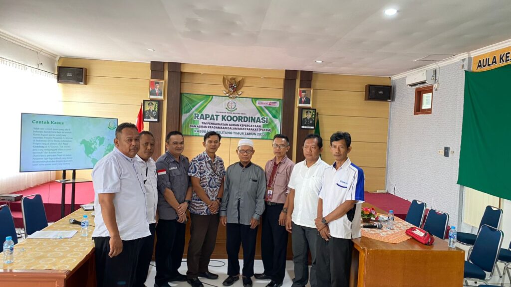 Bahwa Kabid Bina Islam Kemenag menyampaikan sejauh ini belum ada ditemukannya aliran kepercayaan yang menyimpang dan untuk menjaga hal tersebut Kemenag rutin mengadakan penyuluhan-penyuluhan ke desa-desa. Bahwa Kabupaten Belitung Timur sampai saat ini masih cukup kondusif terkait ajaran / pemahaman kepercayaan agama dalam konotasi negative.