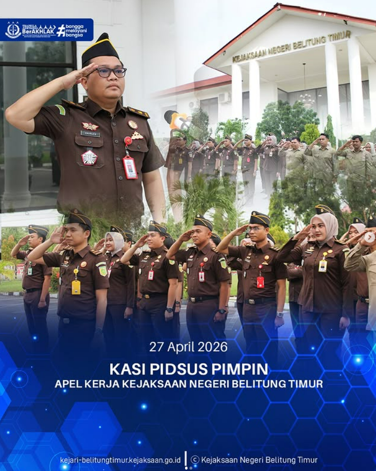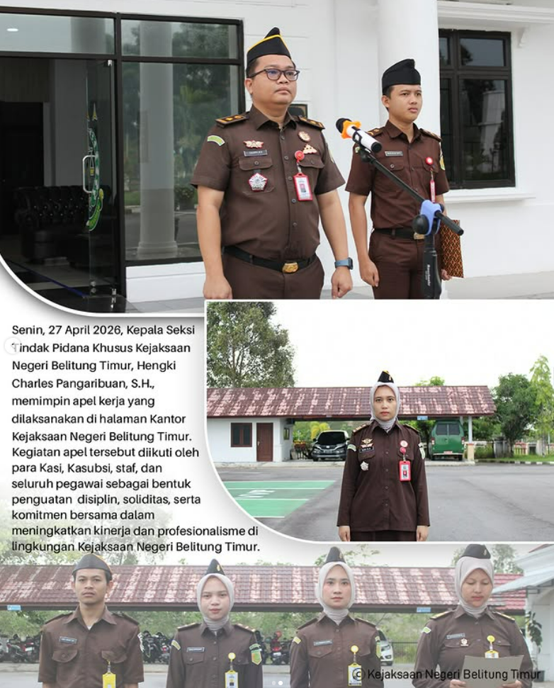 Senin, 27 April 2026, Kepala Seksi Tindak Pidana Khusus Kejaksaan Negeri Belitung Timur, Hengki Charles Pangaribuan, S.H., memimpin apel kerja yang dilaksanakan di halaman Kantor Kejaksaan Negeri Belitung Timur.