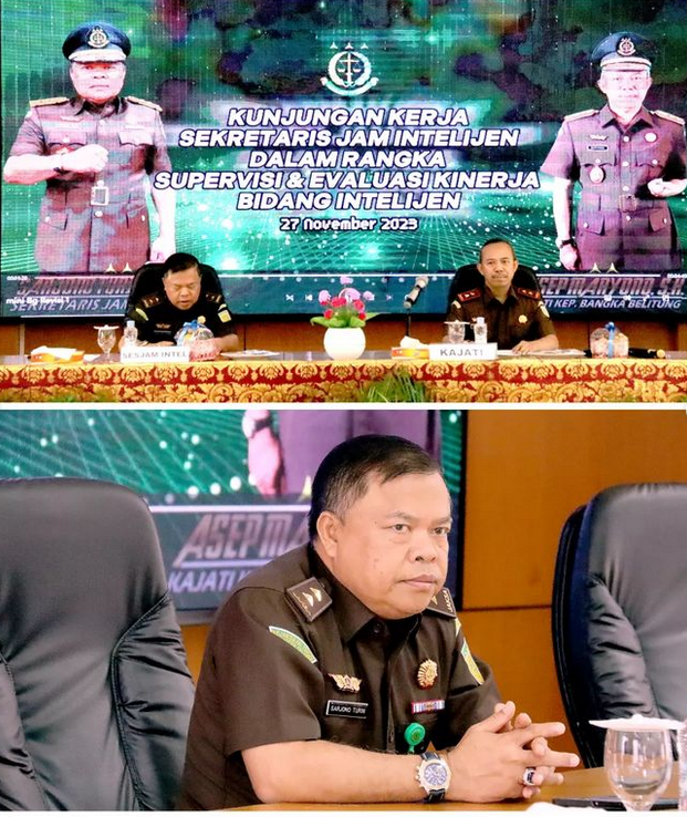 Kepala Kejaksaan Negeri Belitung Timur didampingi oleh Kepala Seksi Intelijen menghadiri kegiatan kunjungan kerja Sekretaris Jaksa Agung Muda Bidang Intelijen Kejaksaan RI ke Kejaksaan Tinggi Kepulauan Bangka Belitung dalam rangka Supervisi dan Evaluasi Bidang Intelijen Tahun 2023 yang bertempat di aula Wicaksana Kejaksaan Tinggi Kepulauan Bangka Belitung.